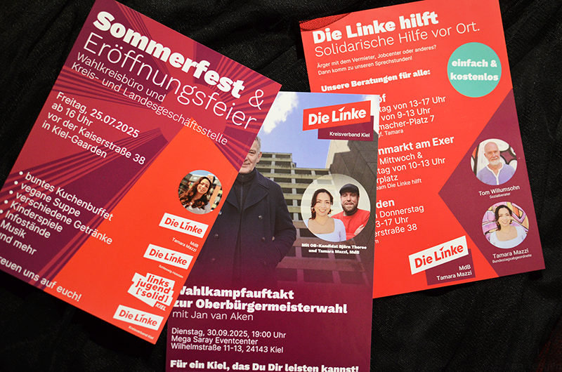 Zu meinen Kund*innen und Auftraggeber*innen gehörten bereits die Bundestagsabgeordnete Tamara Mazzi, der Kieler Kommunalpolitiker Björn Thoroe, weitere Politiker*innen sowie politische Zusammenschlüsse und Projekte, die Nordkirche, Clowns ohne Grenzen e.V., weitere Vereine, verschiedene Kleingewerbe und Privatleute.