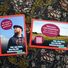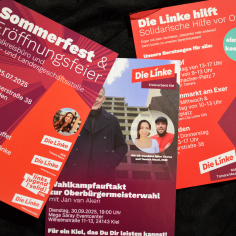 Ich konzipiere und designe Flyer, Plakate, Postkarten, Aufkleber, Sharepics und weitere Elemente für Online- und Social-Media-Auftritte, für Veranstaltungen, zur Information, zu besonderen Anlässen oder einfach nur zur Unterhaltung.